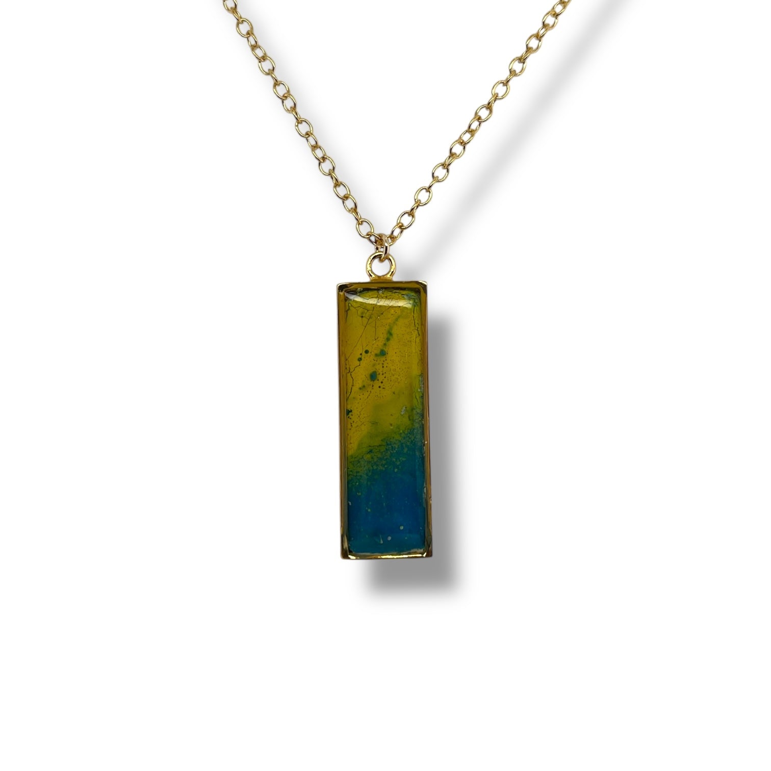 Elevated with an edge, Nechelle is our take on a classic bar pendant. Crafted from gold plated sterling silver and layers of paint sourced from a historic student-painted rock in Ann Arbor, Michigan. If you know, you know  Style it solo or layer it up to make a statement!