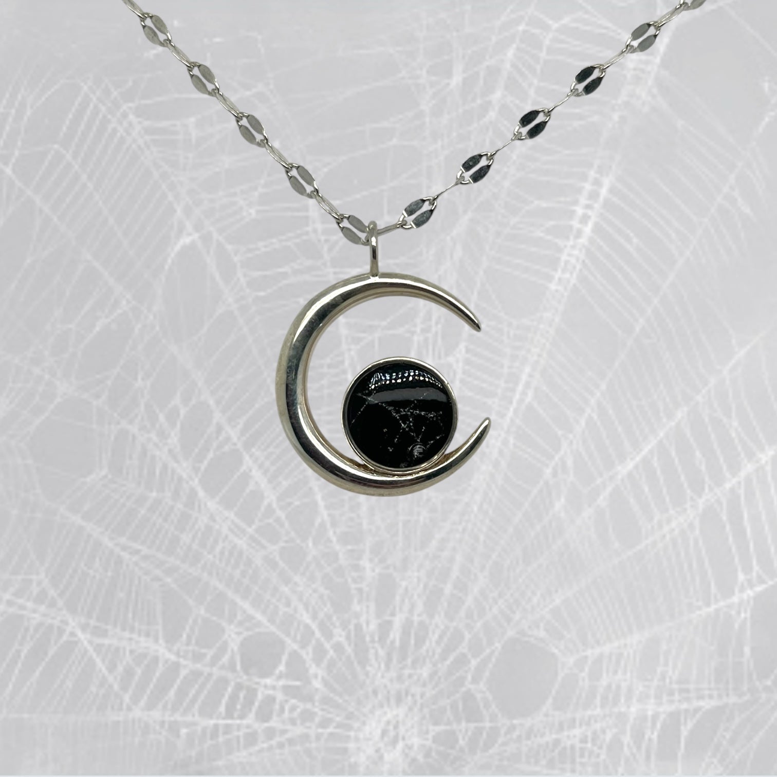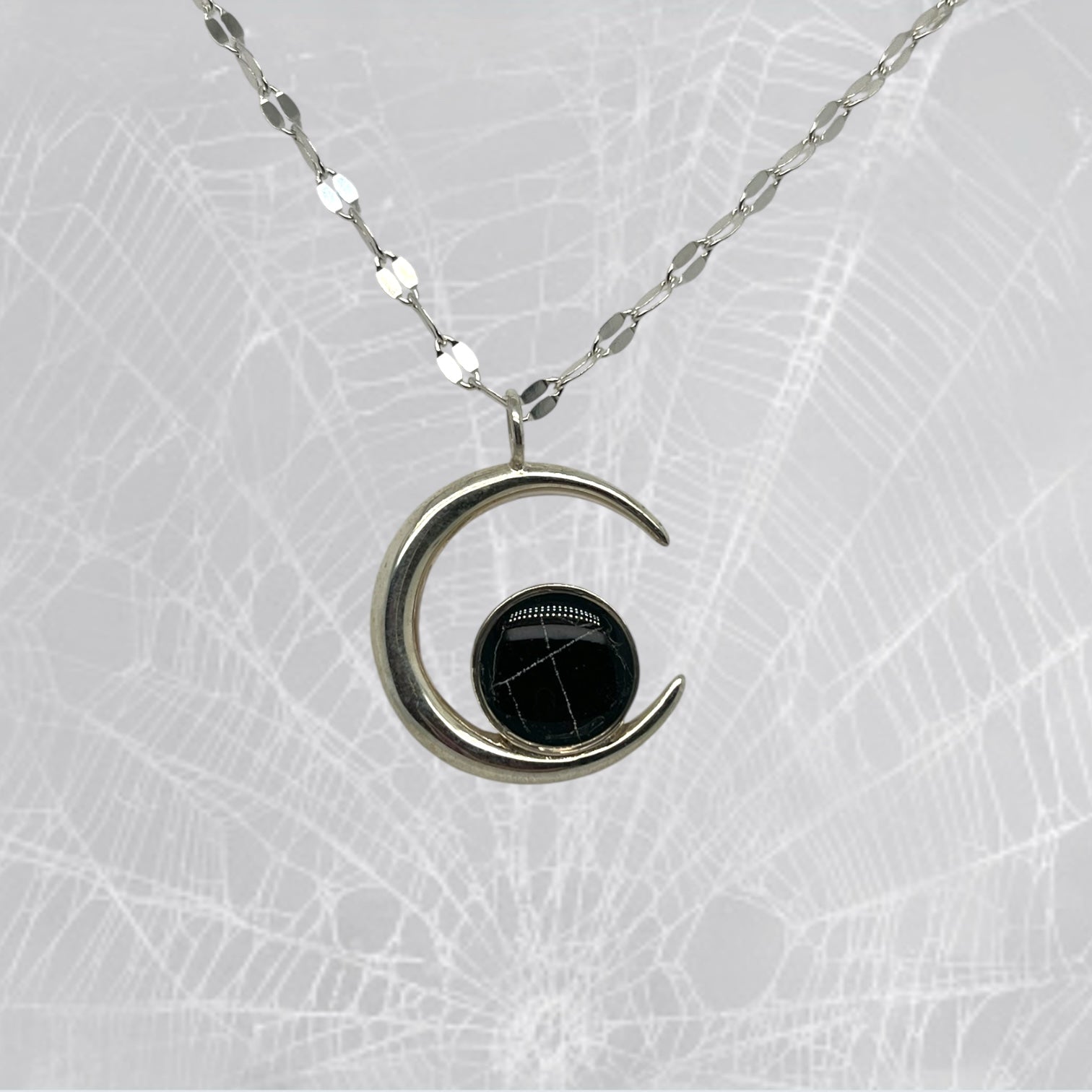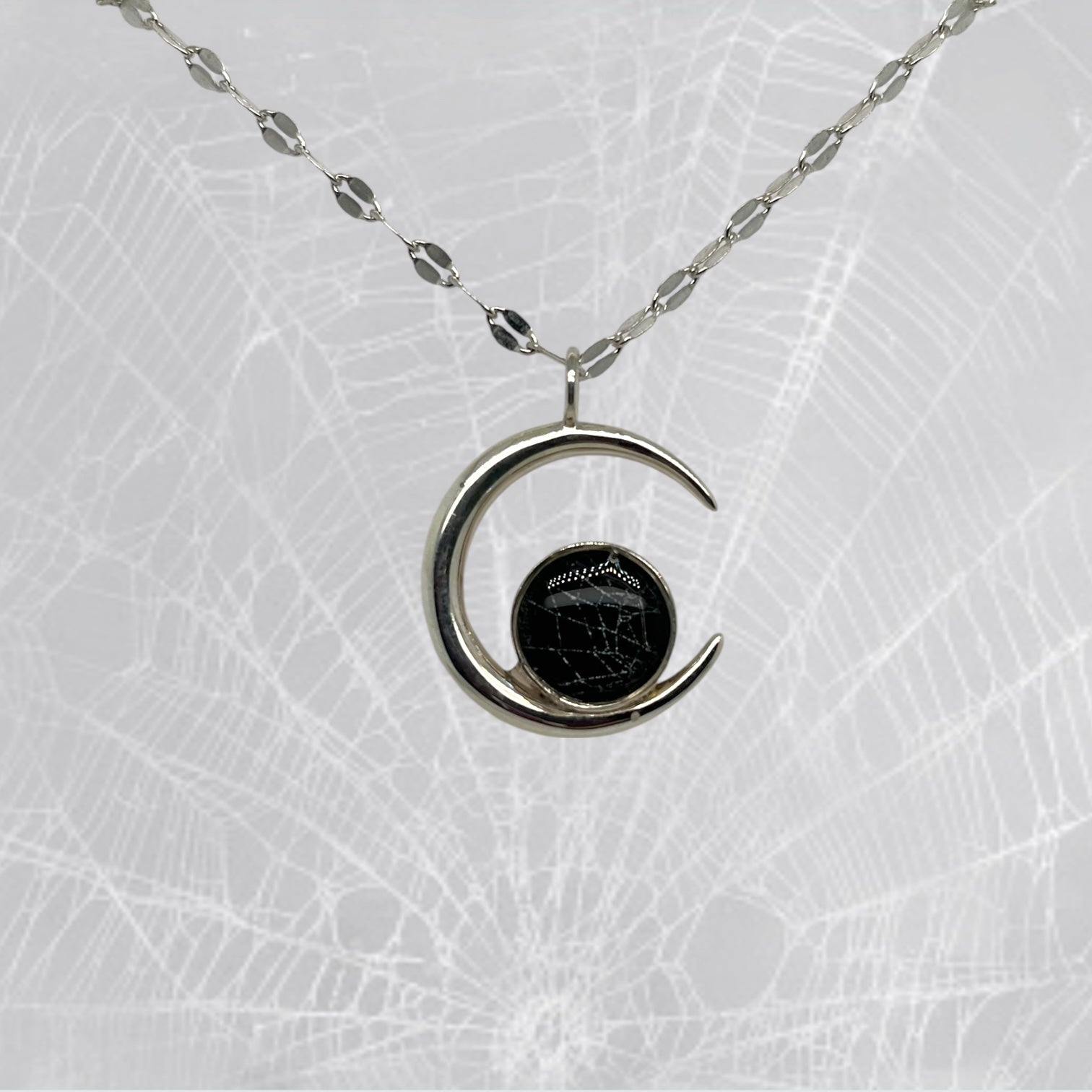 The Selene Necklace is luminous and serene, featuring Rebel Nell’s first-ever sparkle chain — a delicate, light-catching design that mirrors the shimmer of moonlight. Each pendant is handcrafted from genuine spider webs, sealed in sterling silver or 18k gold-plated sterling silver, creating a radiant symbol of reflection and renewal.