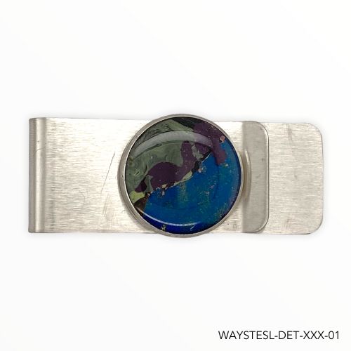 Secure your cash with our Stephen Money Clip. This stainless steel money clip is strong enough to hold even the bulkiest of bills. Featuring a bezel that encases repurposed paint from the campus rock, this piece is functional and fashionable.