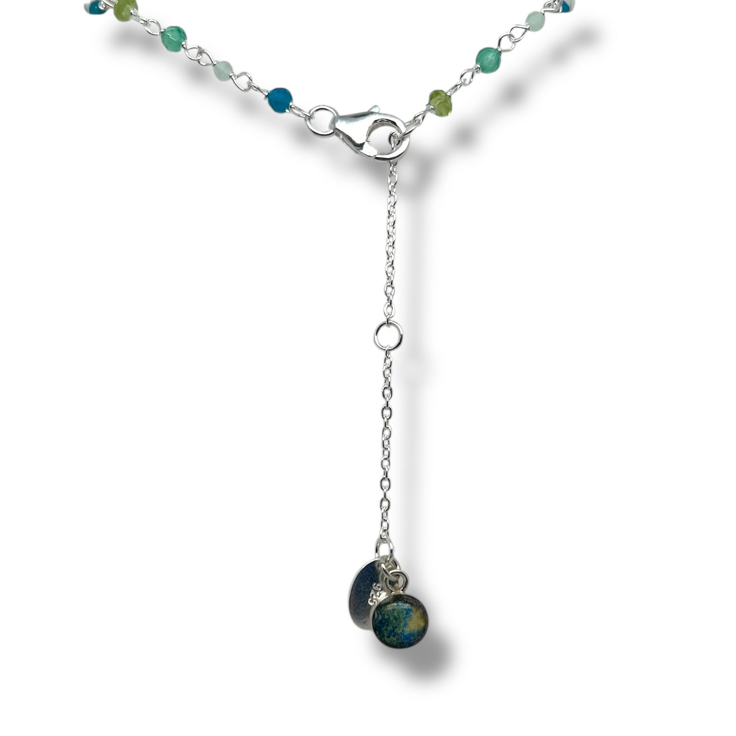 The Abundance Necklace is a striking symbol of growth and prosperity, blending sustainably sourced peridot, green quartz, green onyx, and blue apatite.