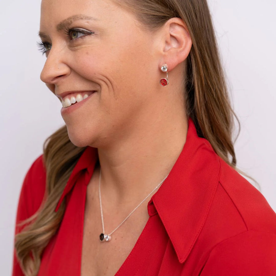 Kim Blair is a whirlwind of creativity and charisma, known for her unique sense of style that always makes a statement. At Rebel Nell, she’s the one who sees possibilities where others see limitations, turning every idea into a vibrant masterpiece. Her bold personality and quick wit inspire everyone around her to embrace their individuality and express themselves fearlessly. We named The Blair Duet Necklace after her because it embodies the spirit of fun and spunk she brings to our team. The playful graffiti and sparkling CZ details reflect Kim’s vibrant energy and passion for life. Wearing this necklace is like carrying a piece of Kim’s unstoppable spirit with you—a reminder to be bold, ask questions, and never shy away from being your true self!