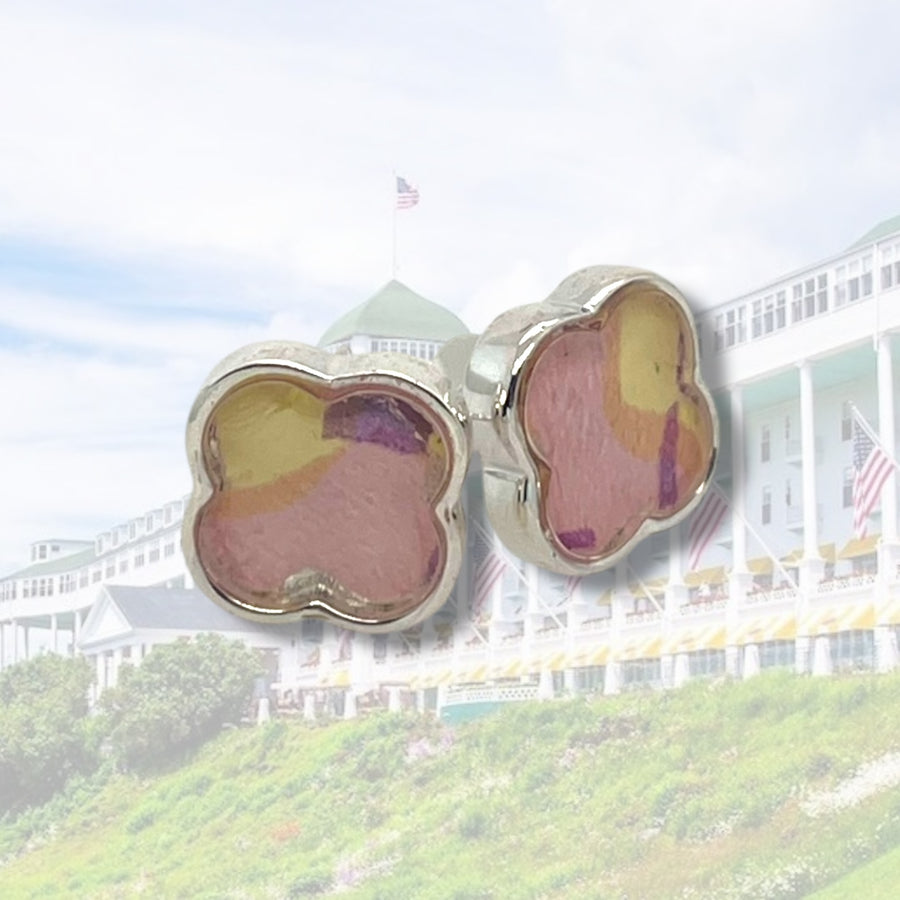 Crafted with care and layered with history, this collaboration features our signature clover silhouette inlaid with authentic wallpaper from the Grand Hotel on Mackinac Island—a place where no two rooms are alike, and every detail tells a story.