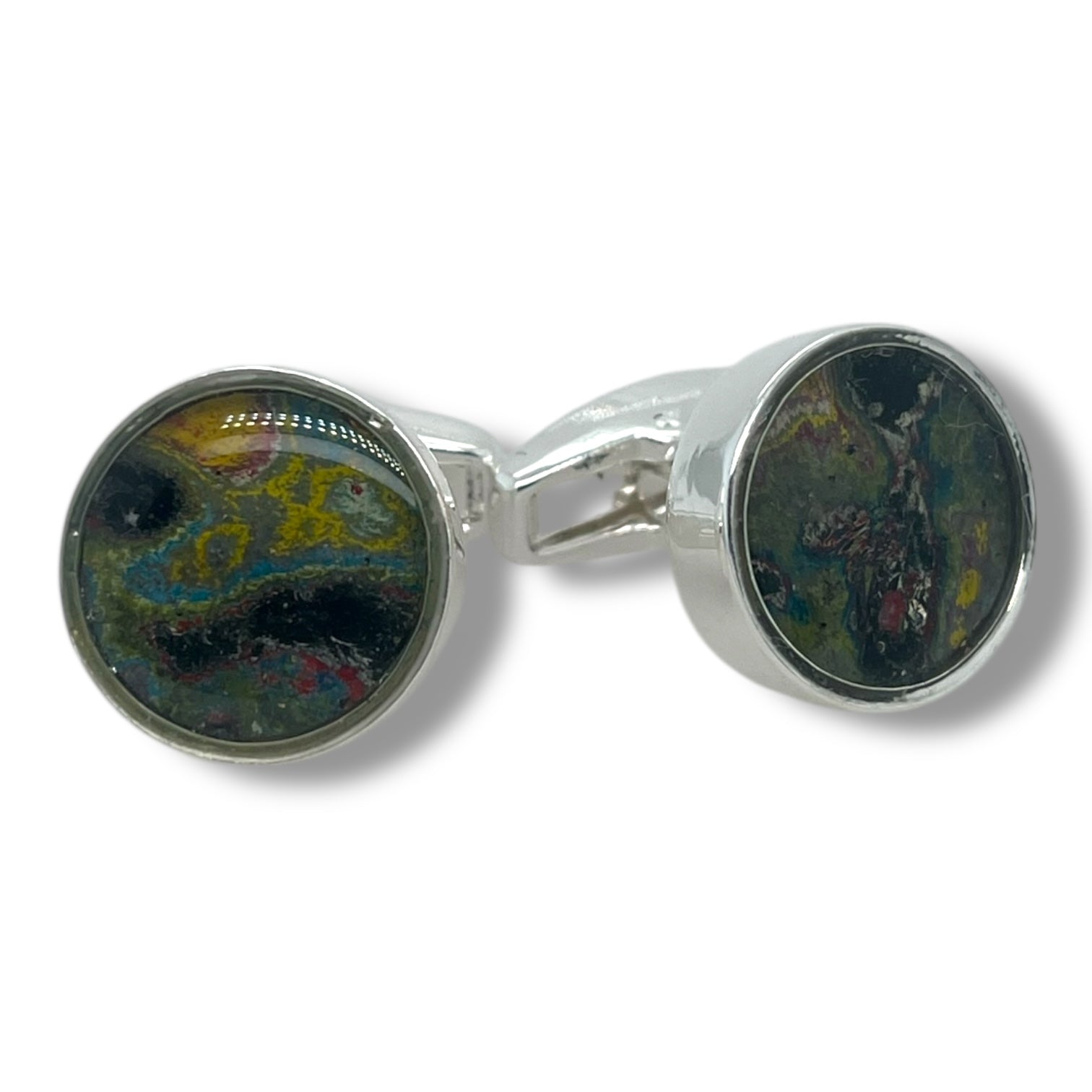 Rock your style with our silver Greg Cuff Links. The toggle clasp makes them easy to slip on and off and the graffiti adds an edge to your dressy attire. Make a statement with these stylish cuff links.