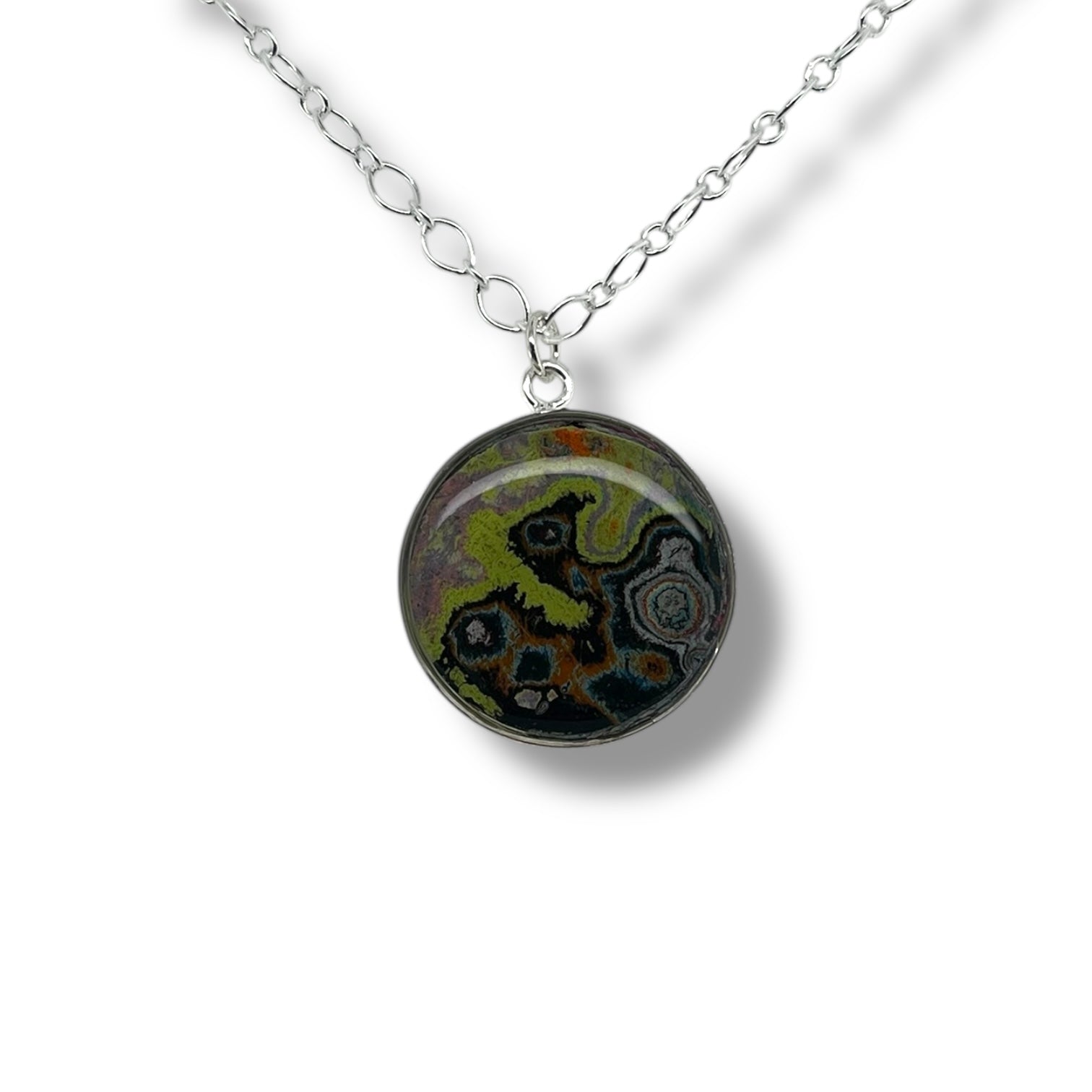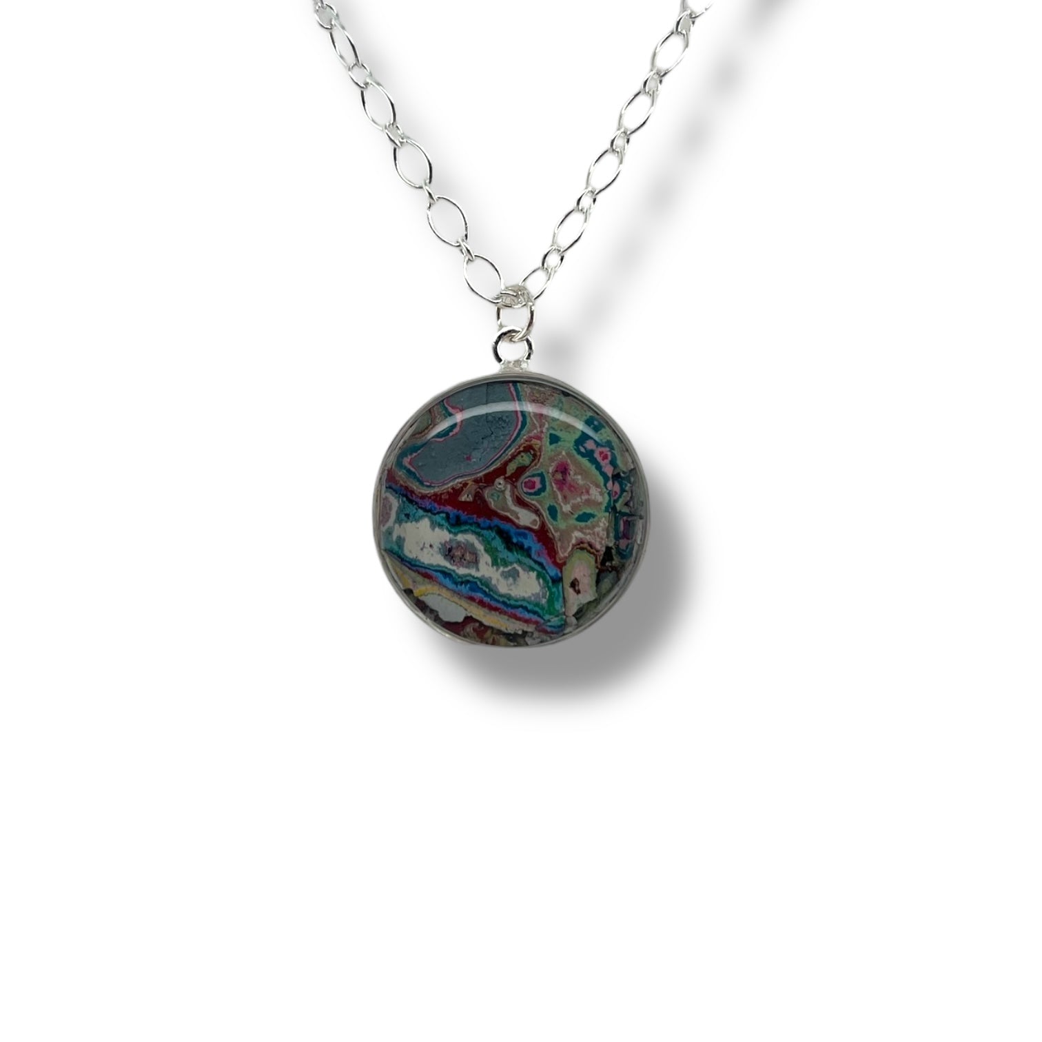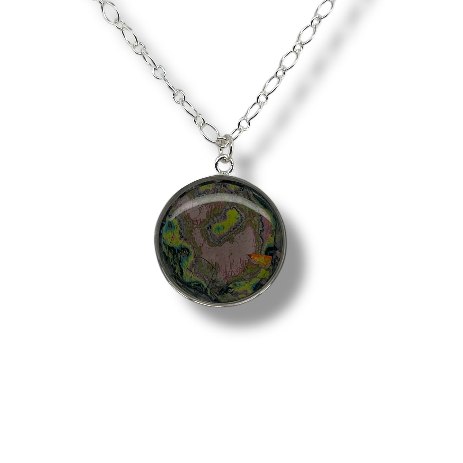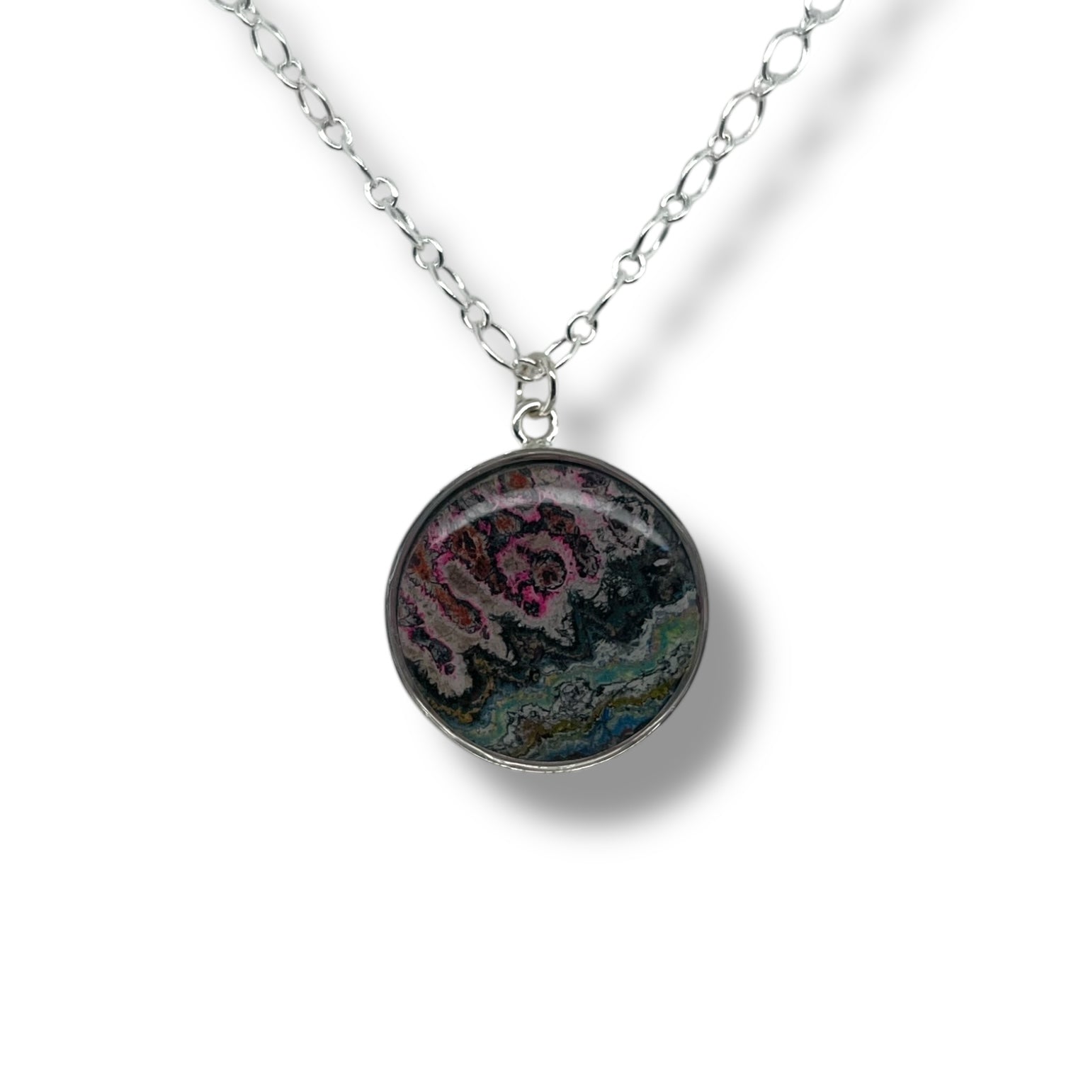 The perfect accessory for any outfit, the Nicole Necklace is a timeless piece that exudes style. With a sterling silver bezel that perfectly frames the repurposed graffiti, this piece is totally a work of art!