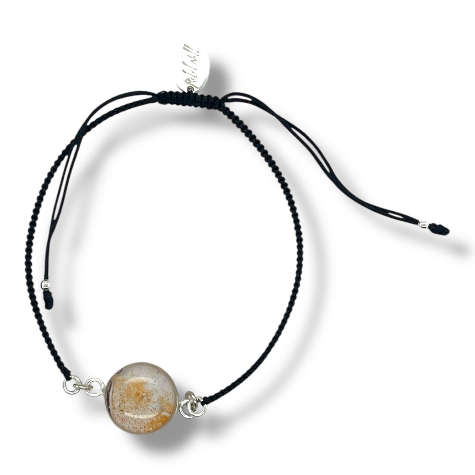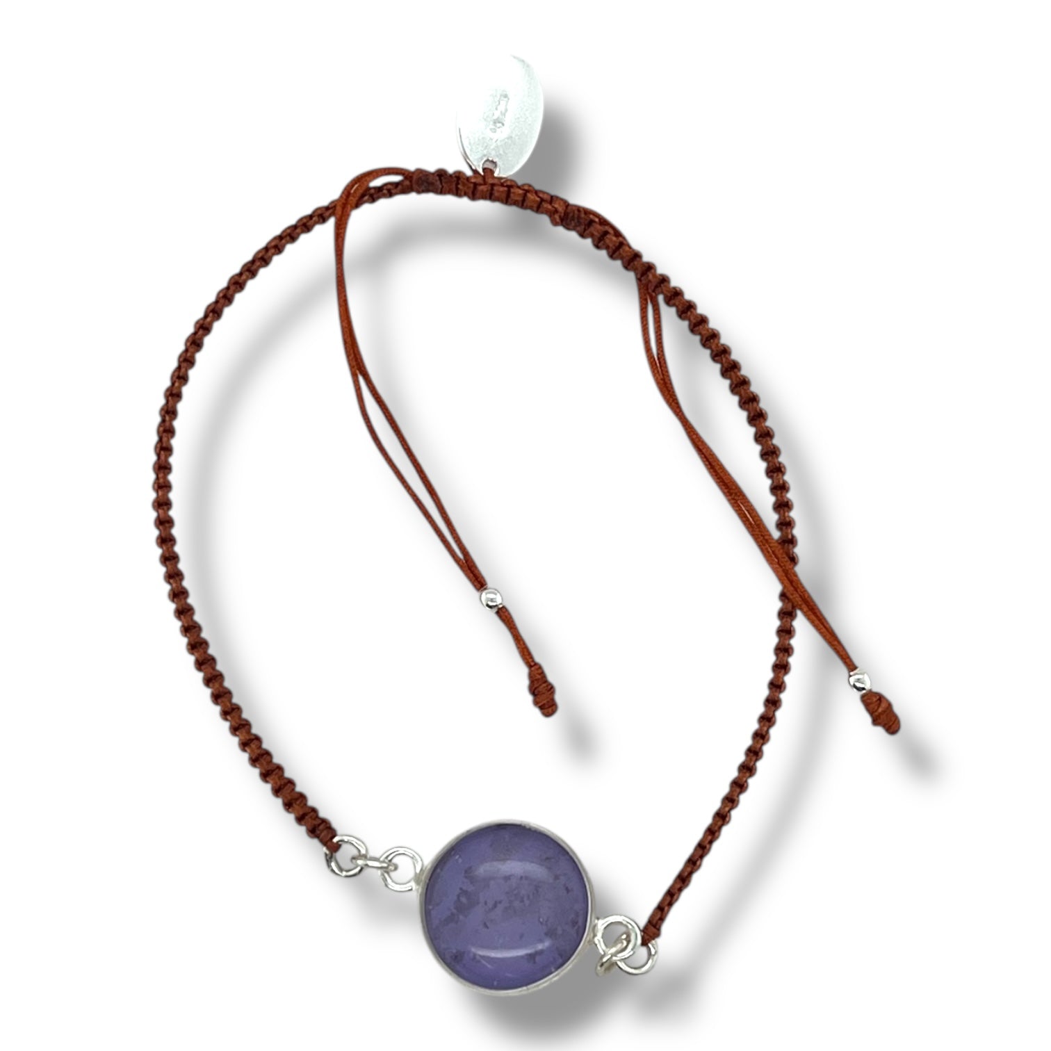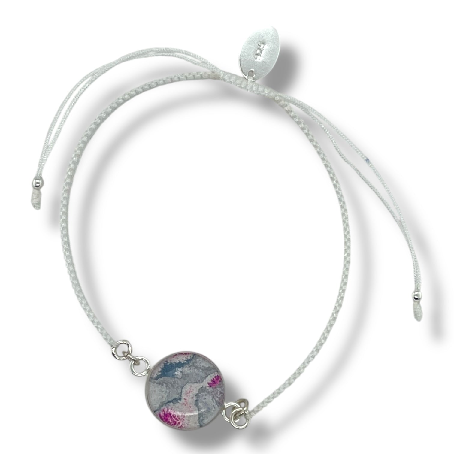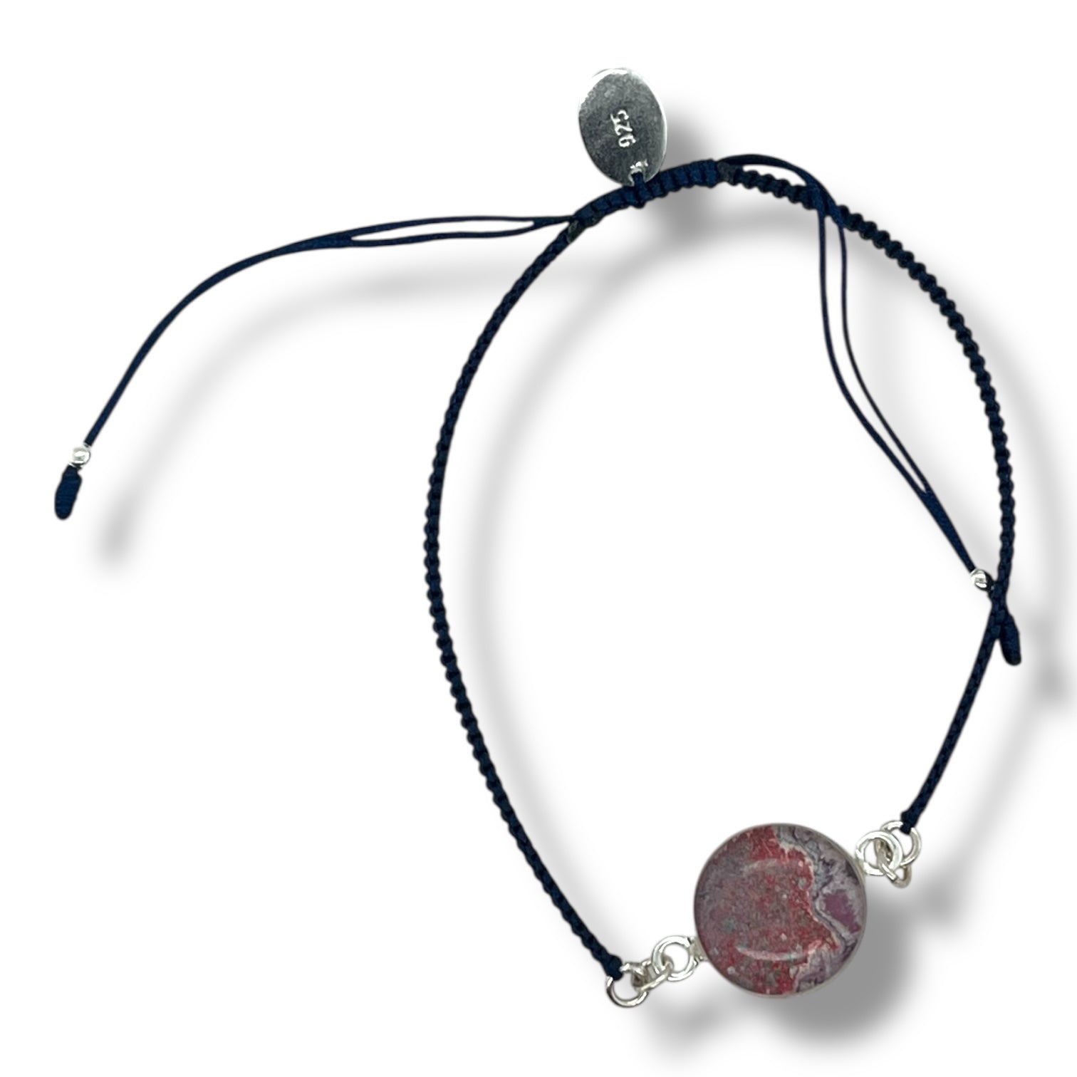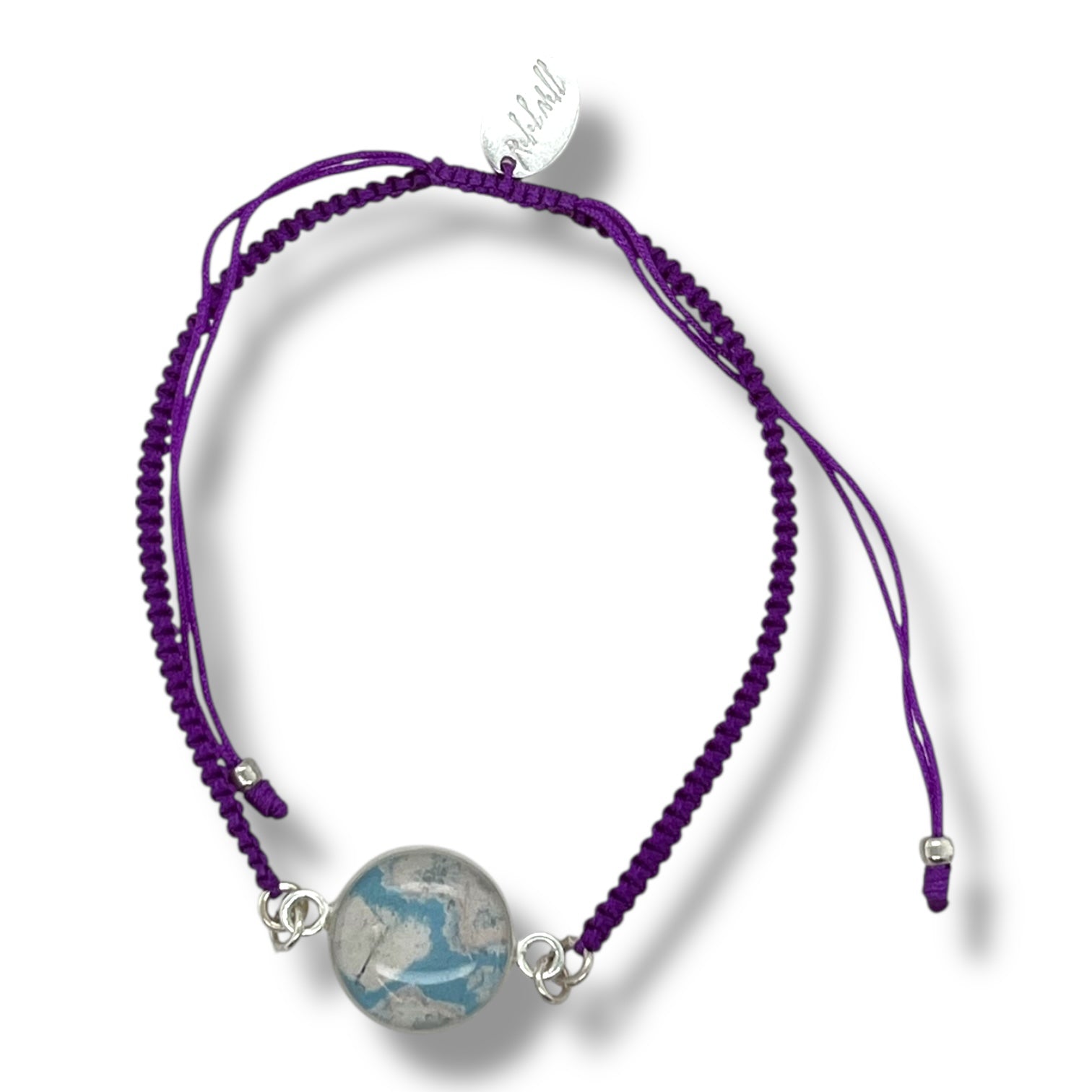 Add a bit of color to your look with our Taylor Bracelet. This cool piece features repurposed graffiti set off by a silver bezel and violet adjustable cord. It's the perfect way to make a statement without saying a word!