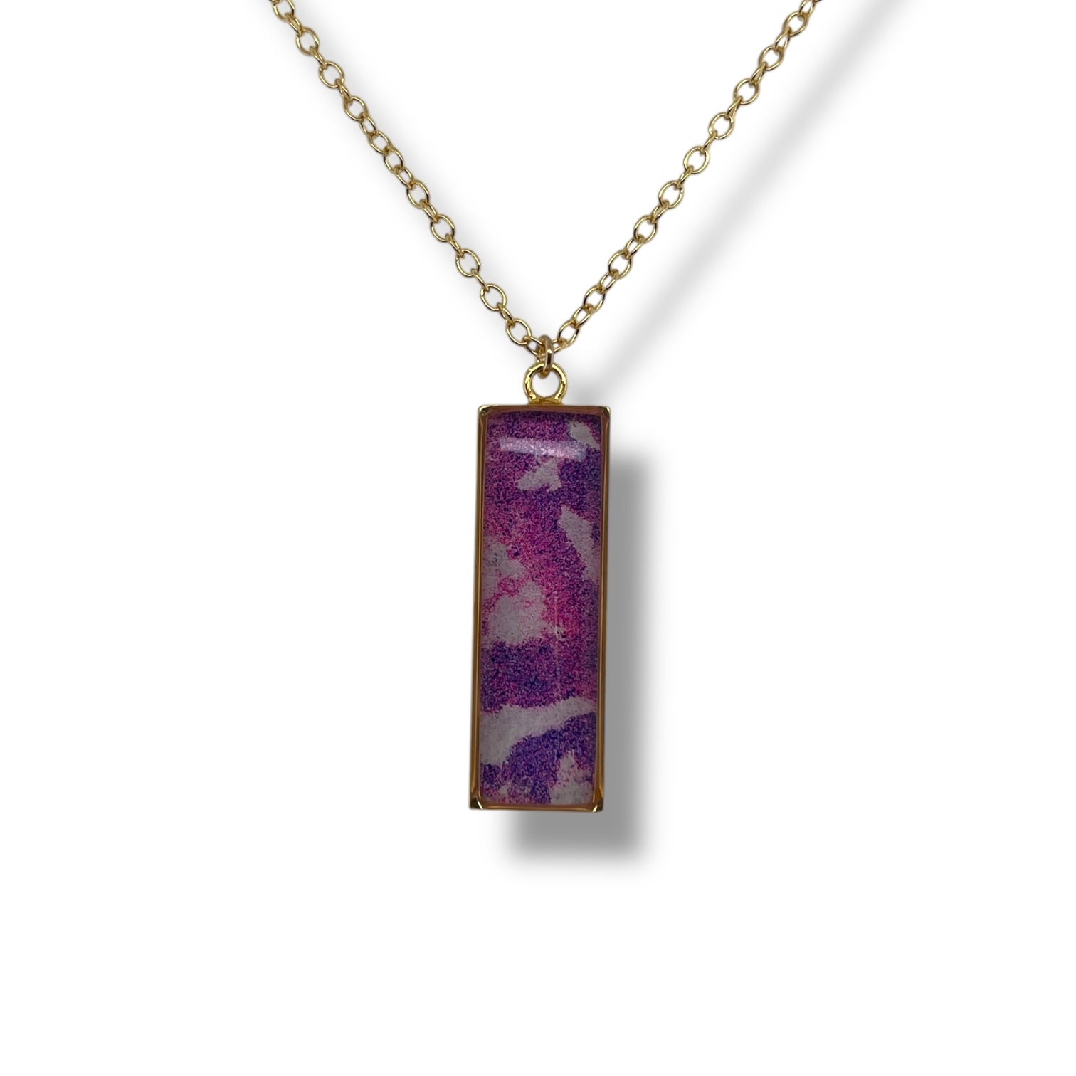 Elevated with an edge, Nechelle is our take on a classic bar pendant. Crafted from gold plated sterling silver and layers of graffiti, it’s a framed piece of wearable art. Style it solo or layer it up to make a statement!
