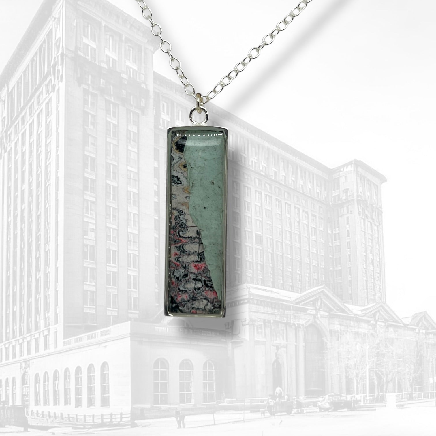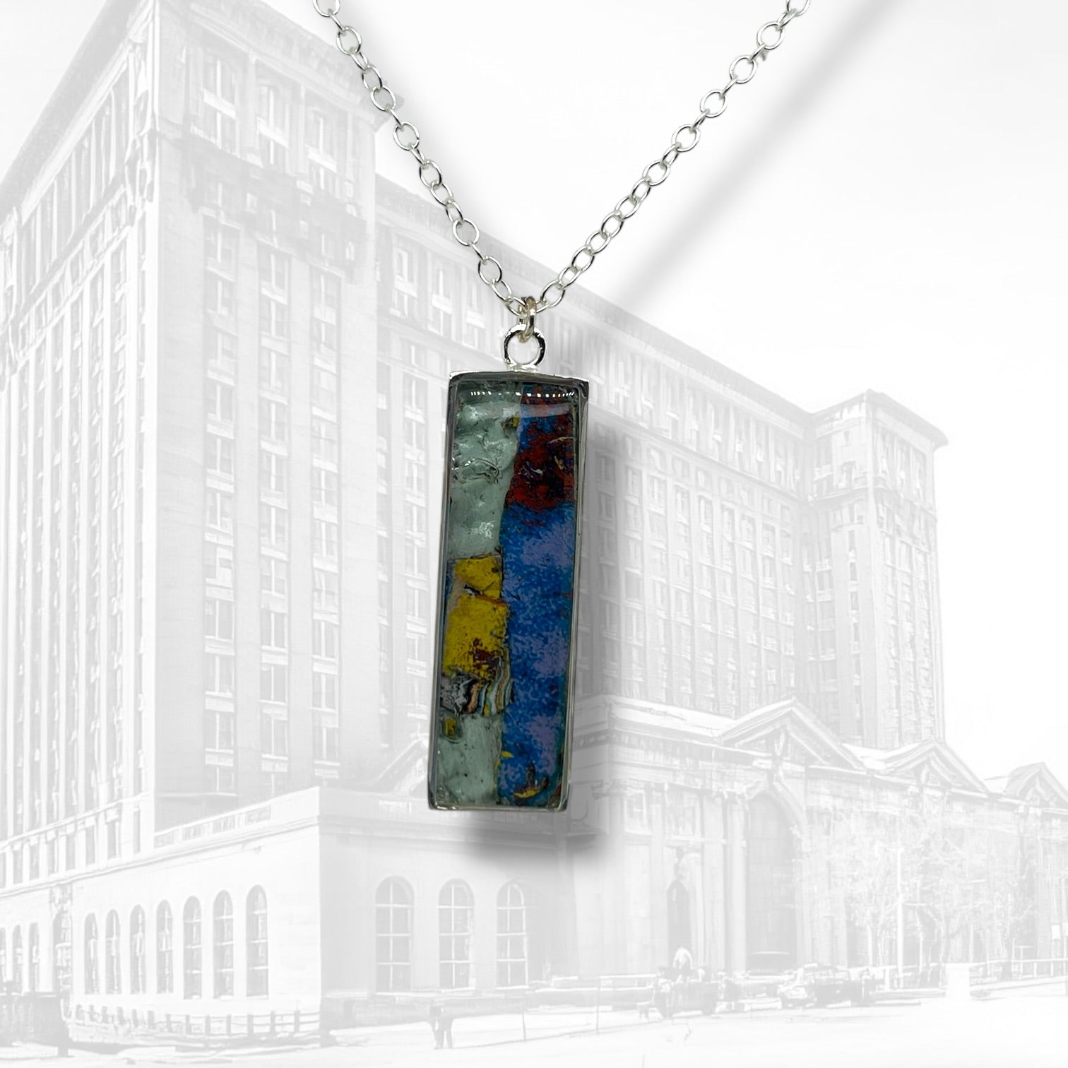 Elevated with an edge, Nechelle is our take on a classic bar pendant. Crafted from sterling silver with layers of graffiti historic graffiti from MCS, it’s a framed piece of wearable art. Style it solo or layer it up to make a statement!